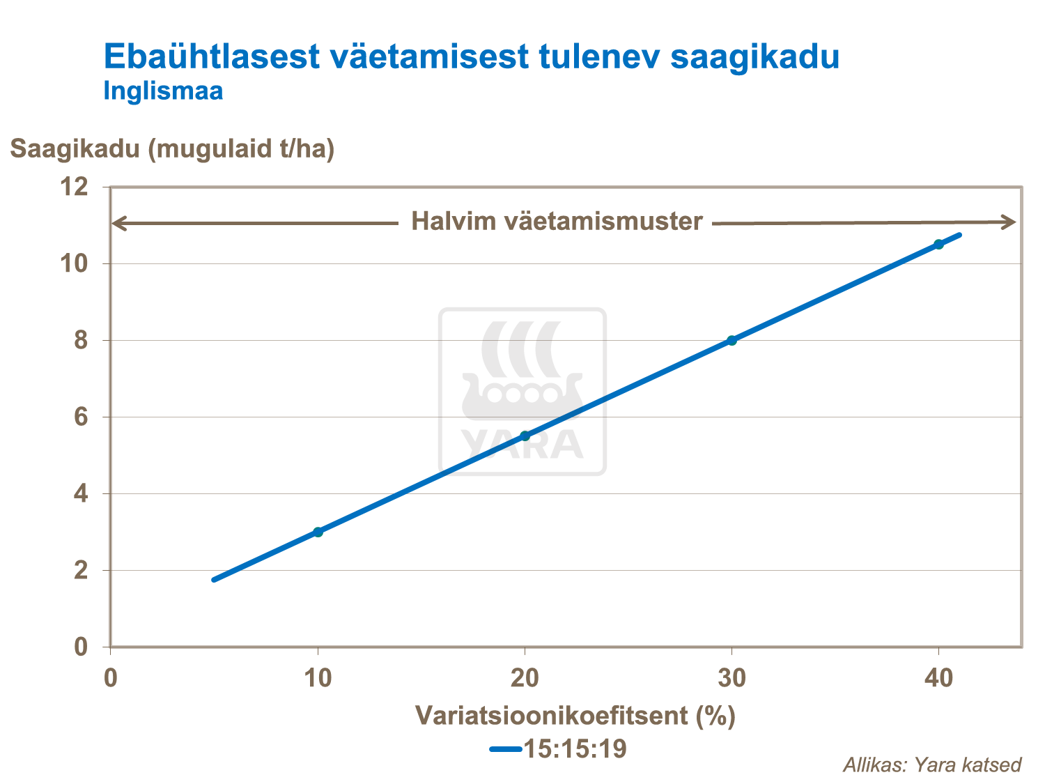 Väetamisel on oluline selle ühtlane jaotus. Isegi väike erinevus +/- 10% mõjutab saagikust kuni 3 t/ha kohta.