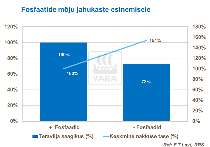 Kui fosfori kättesaadavus on piiratud, võib see vähendada saagikust ning suurendada taimede nakatumist haigustesse. See on põhjustatud asjaolust, et fosforipuuduse korral on häiritud taimede ainevahetus ning kasv, mistõttu on taimed haigustele vastuvõtlikumad. Uuringud on näidanud, et kui fosforiga ei väetata, tõuseb vastuvõtlikkus jahukastele kuni 50%.