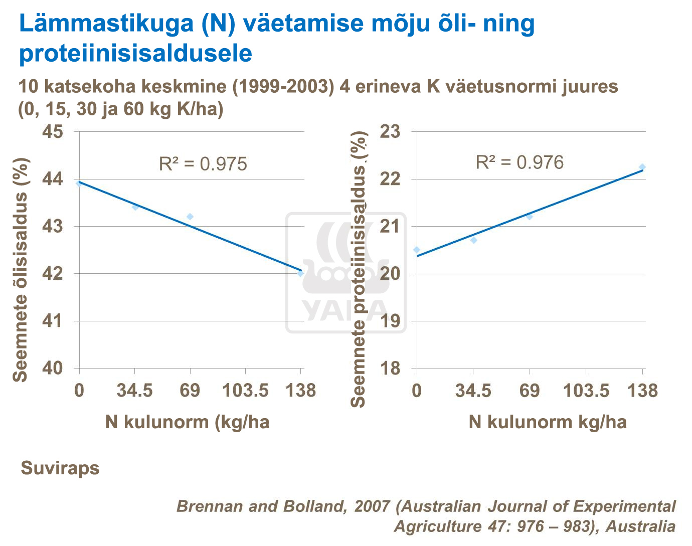 Lämmastikupuudus vähendab mitte ainult rapsi saaki, vaid ka seemnete valgusisadust. Samas viib lämmastikuga liigväetamine rapsisaagi kvaliteedi languseni – tulemuseks madal õlisisaldus ja suurenenud glükosinolaatide sisaldus, seda eriti siis, kui väävel pole olnud piiravaks teguriks.