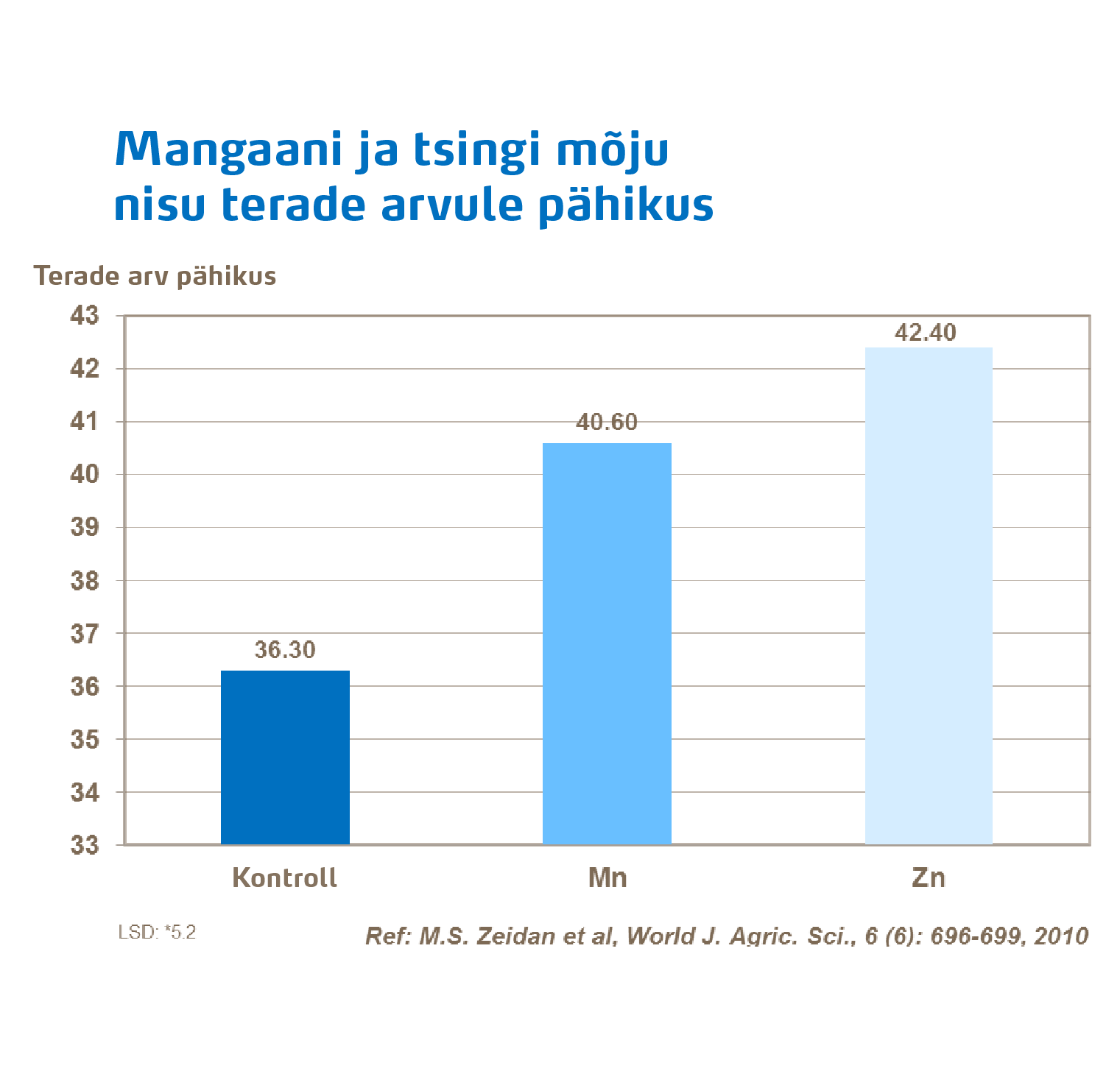 Mangaan on oluline element soodustamaks võrsumist, mis otseselt mõjutab saagikust. Lisaks on mangaanil roll ka fotosünteesiks vajaliku klorofülli sünteesimisel. Elemendi piisav tase parandab taimede haiguskindlust ning vähendab rasketest kasvutingimustest tingitud stressi. Sügisel kasutades tõstab taimede talvekindlust. Kuna tänu mangaanile paraneb toitainete omastamine, siis kevadel väljendub see kiiremas kasvus.